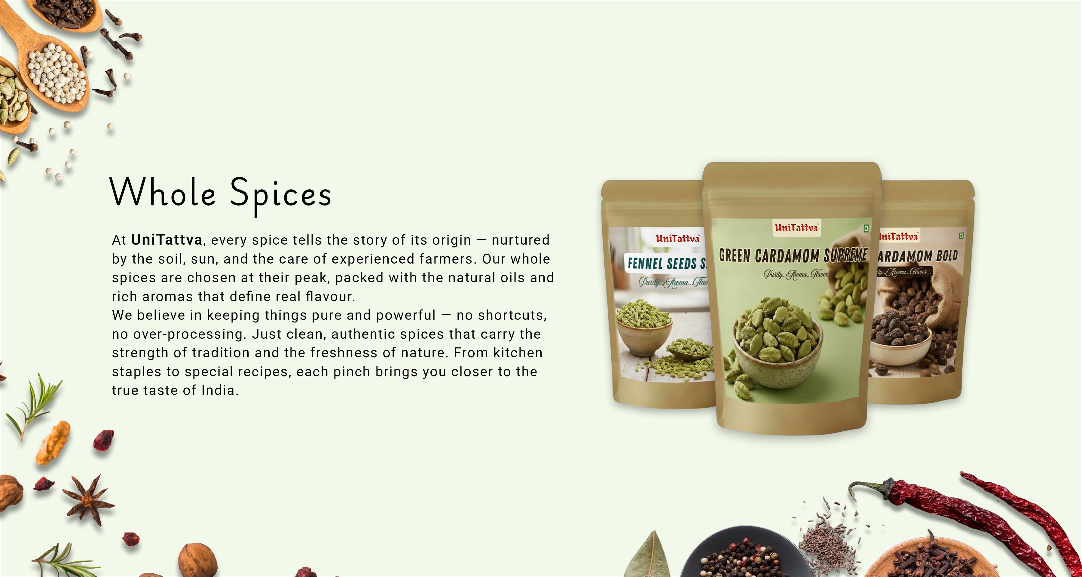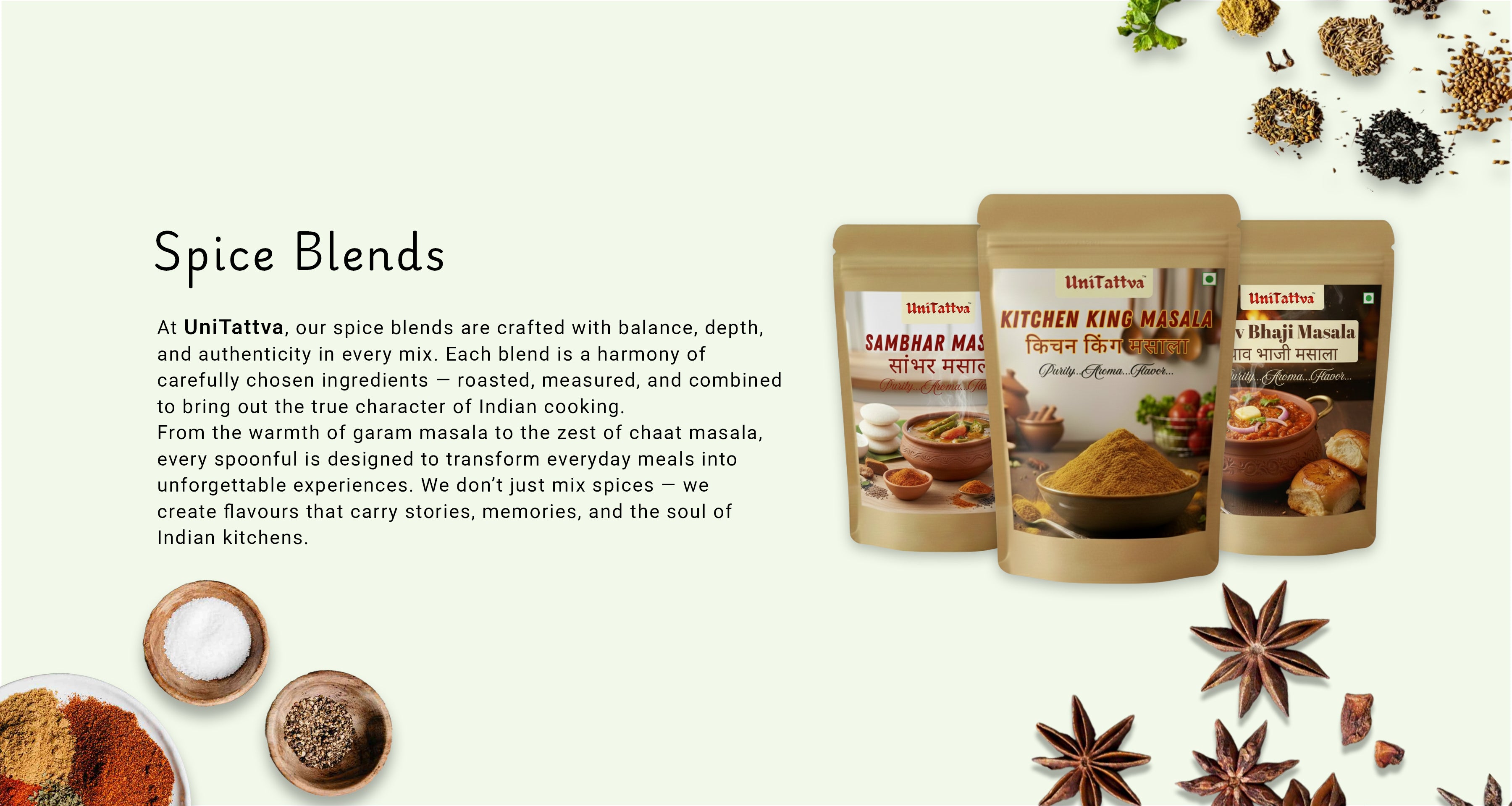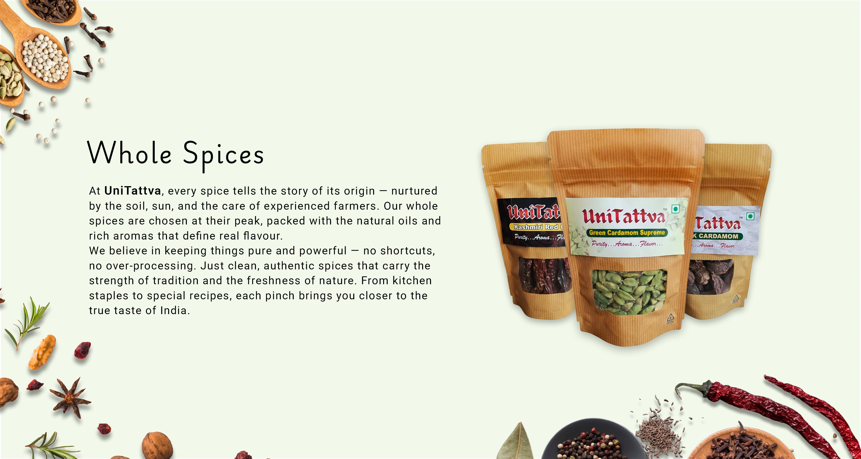 We bring India’s rich spice heritage to your kitchen with honest sourcing, gentle processing, and uncompromised quality.